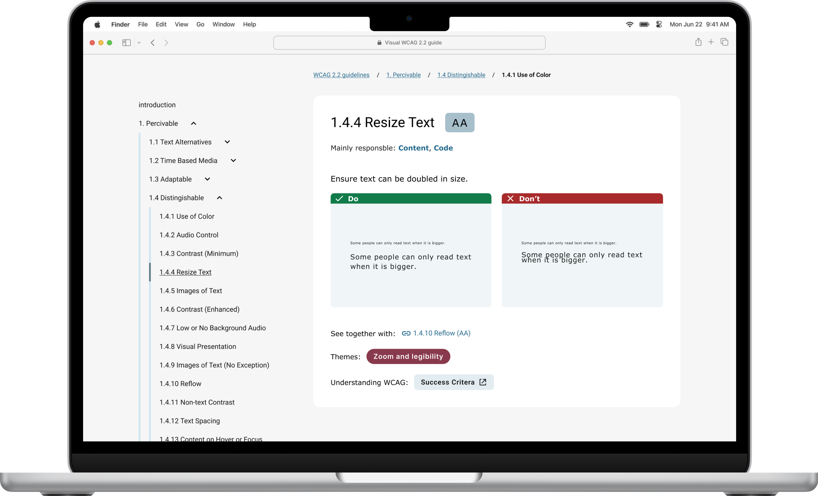 I researched how designers currently understand and use accessibility guidelines, then prototyped a visual accessibility guide designed to make WCAG easier to navigate and apply.