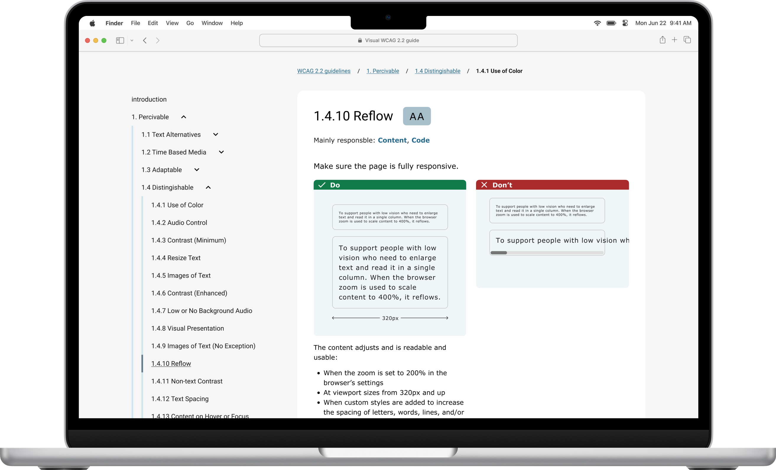 The prototype demonstrates how visual structure, hierarchy, and design principles can make accessibility guidelines easier to understand and integrate into everyday design workflows.